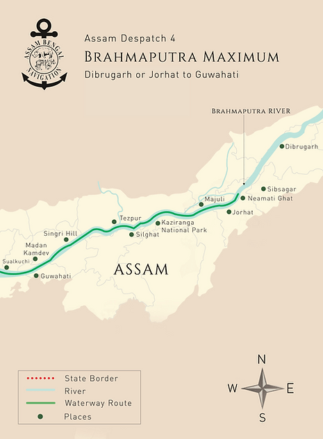 This itinerary, including the cruise and approximate driving durations, is subject to river and weather conditions. Kaziranga National Park comprises low-lying grassland, which may not be visitable when the river is at or near flood level.